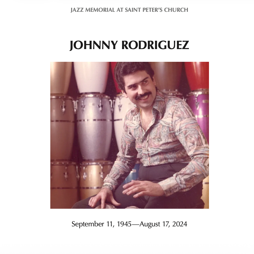 JOHN RODRIGUEZ JR. was born September 11, 1945 in NYC’s Eastside Puerto Rican enclave known as “El Barrio” or Spanish Harlem. His father, John “La Vaca Pequeña” Rodriguez Sr., was a highly respected percussionist, in particular on the bongó, who played with well known orchestras like that of pianist Noro Morales. His mother Tati was a well known mambo dancer who eventually hosted her own show on Spanish language TV in the New York area. Both were of Puerto Rican descent. Transversing Harlem’s First, Second, Third, Park, Lexington, Madison, 5th Avenues from 96th to 125th streets, El Barrio received its nom de plum due to the growing immigration of Cubans and migration of Puerto Ricans to the area in the 1930s which came to its height in the post Word War II era. The interaction between African American jazz musicians and their vibrant culture from Harlem’s west side with Cubans and Puerto Ricans and their own rich musical culture on the east side would eventually intersect at the Park Palace Ballroom. Located on E.110th Street and 5th Avenue, the geographic dividing line of both areas, it would give birth to the formation of Machito & The Afro-Cubans who rehearsed and did their first performances there in 1939.