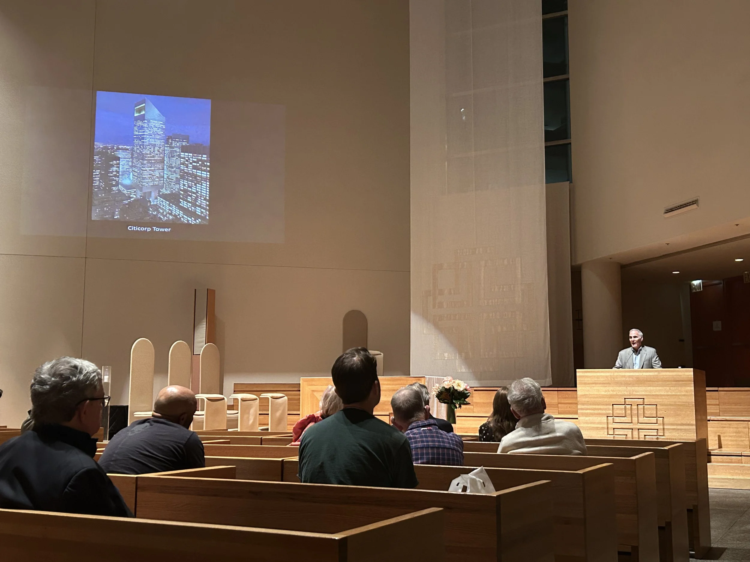 On October 15, 2025, Michael Greenberg gave a book talk about his new book The Great Miscalculation. Following the story of the Citicorp tower’s conception and quick redesign to prevent collapse, Greenburg gives insight into the first of its kind partnership between church and corporation--Saint Peter's Church and Citibank. Learn more about this often overlooked part of New York City history in the space that is at the heart of it all. Presented by The Arts and Architecture Conservancy at Saint Peter’s in partnership with Archtober.