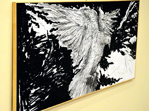 The project is addressed the theme of loss and memory. Images of empty nests floating in nowhere, fragments of the plants, drawn with graphite, juxtaposed to debris of the computers, cell phones, assembled on the canvas and then covered with splashes of paint.