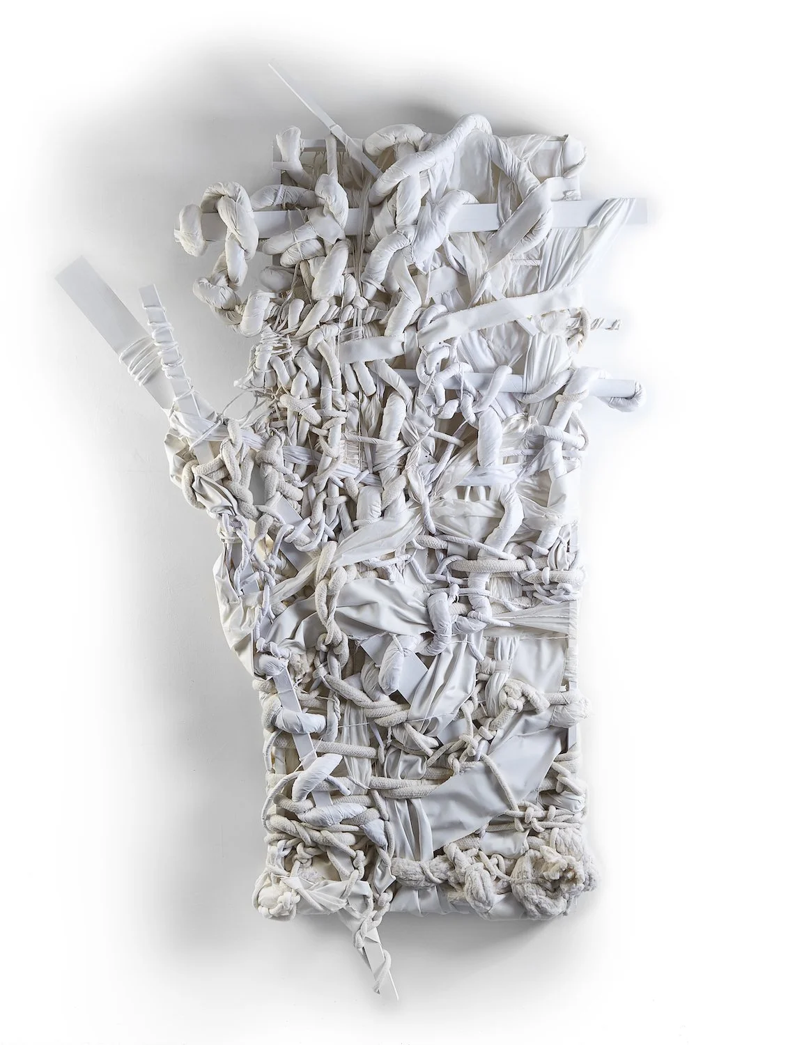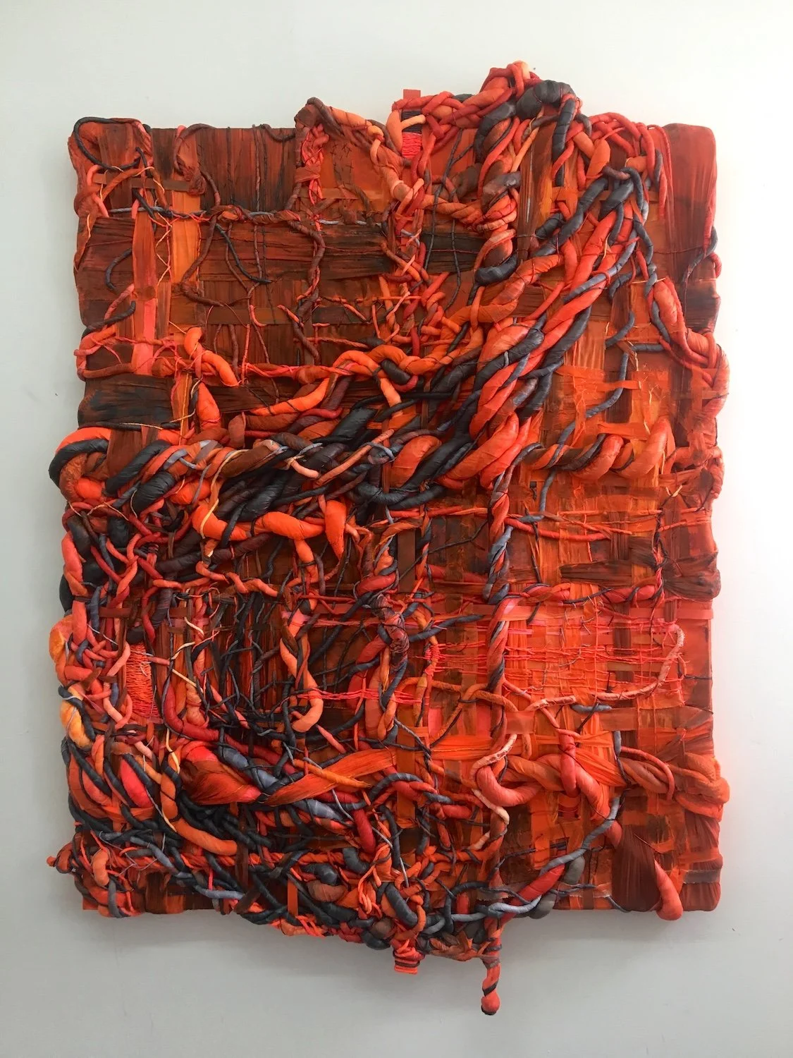 American artist Chellis Baird blurs the intersection of painting, sculpture and textiles. Baird explores the elements of painting by reconstructing handwoven canvases from a unique perspective. Her bespoke process begins with woven structures as her base. Each canvas starts with neutral toned materials that are then painted, dyed and sculpted into dimensional brushstrokes. She creates tangled compositions through a series of twists, knots, and upcycled textiles. Baird’s background in fashion allows her to dress the canvas with imagination. Not unlike a garment, she uses color to emphasize the authenticity and body of each piece. Baird received her BFA in textiles from Rhode Island School of Design and studied studio art at the Art Students League in New York City. Born in Spartanburg, SC, Baird now lives and works in New York City.