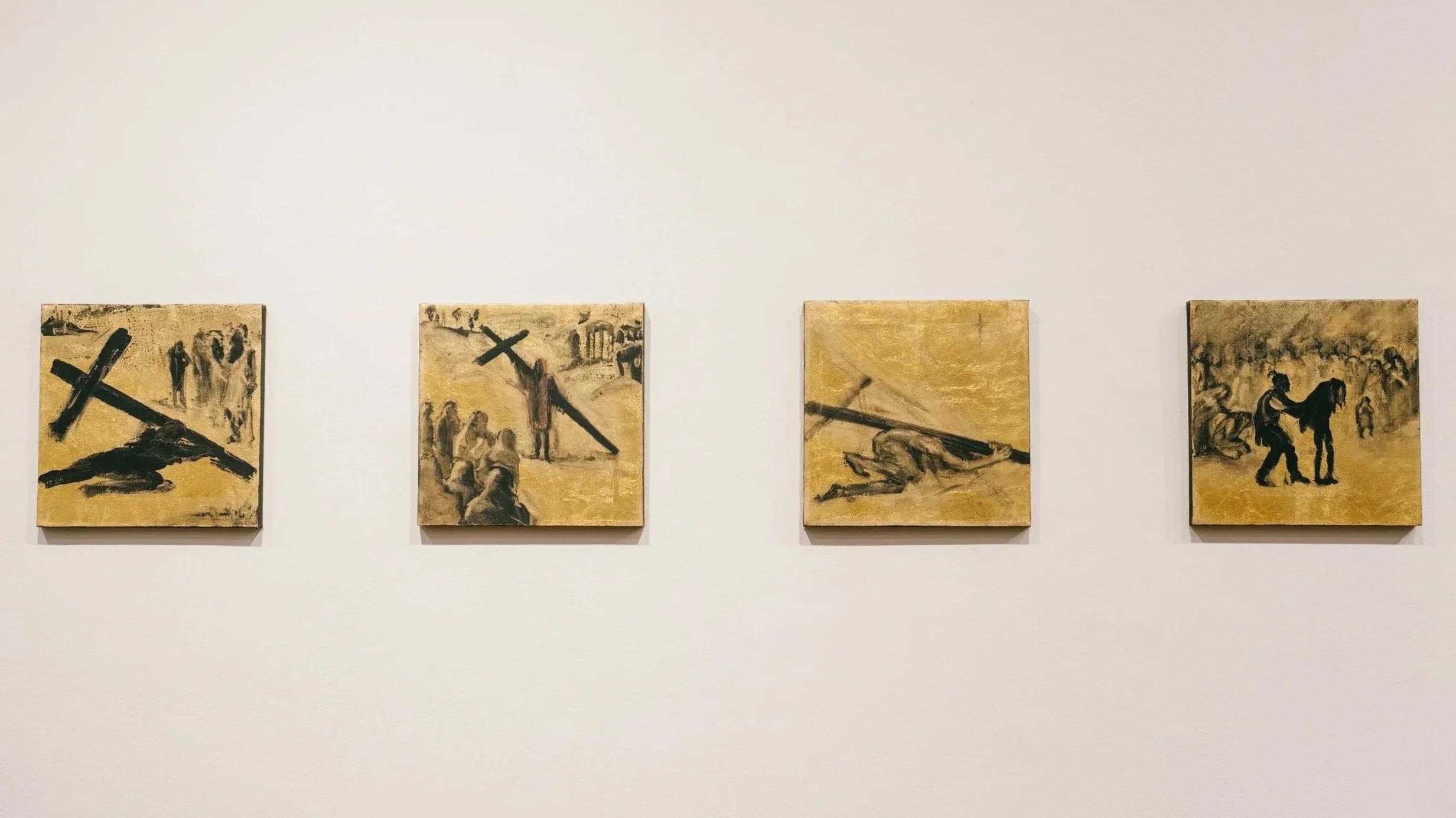 Painting with her non-dominant hand, Anastasi allows the artistic vision to emerge with an organic informality, one that honors the natural, human response to the Passion of Christ.